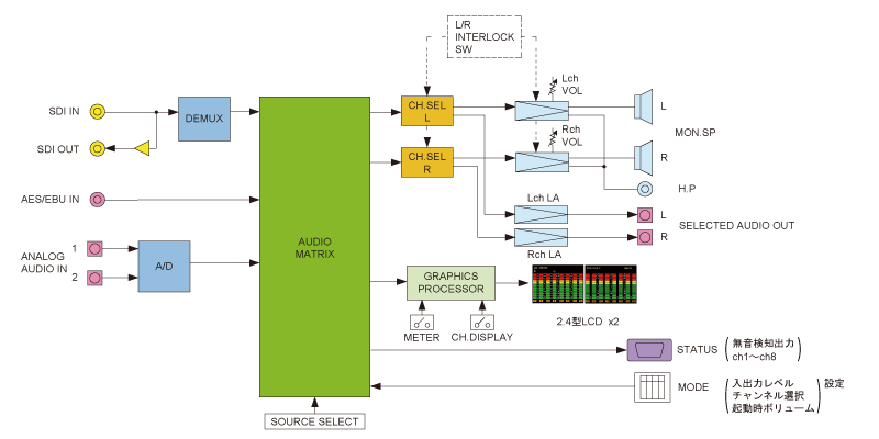 12G/3G/HD/SD/アナログオーディオ/エンベデッドラウドネスモニター/VUマルチメーター