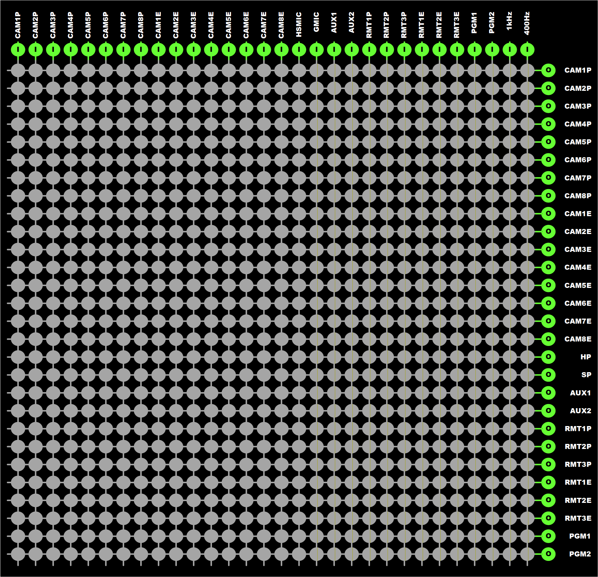 - LU21内のインカムマトリクスのクロスポイント状態を表示します。