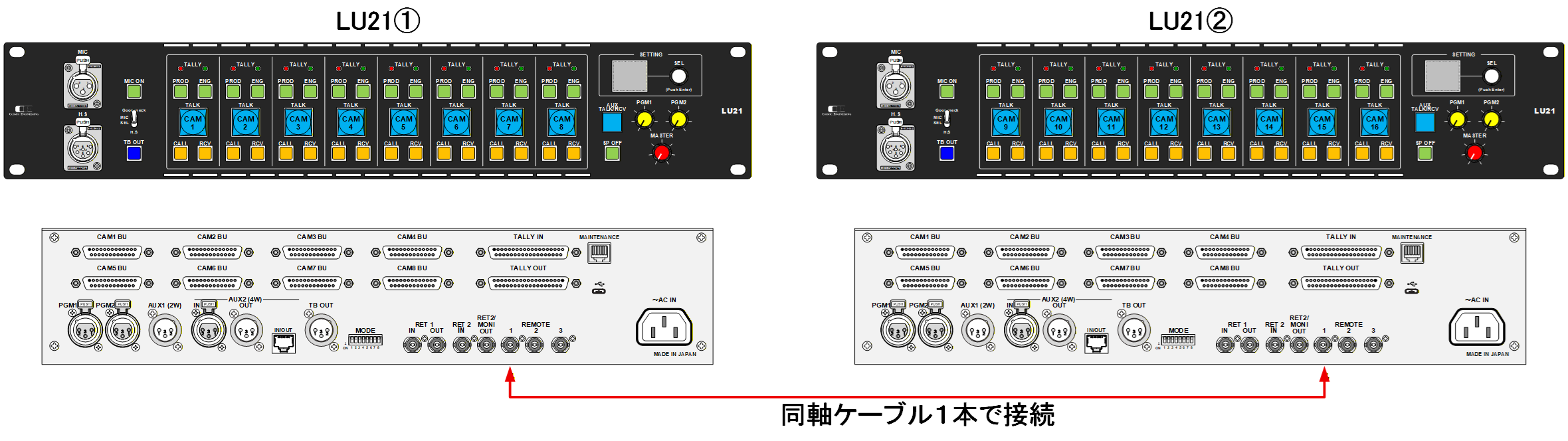 - 2台のLU21を接続させて、最大20名での「パーティーライン」での会話が可能になります。