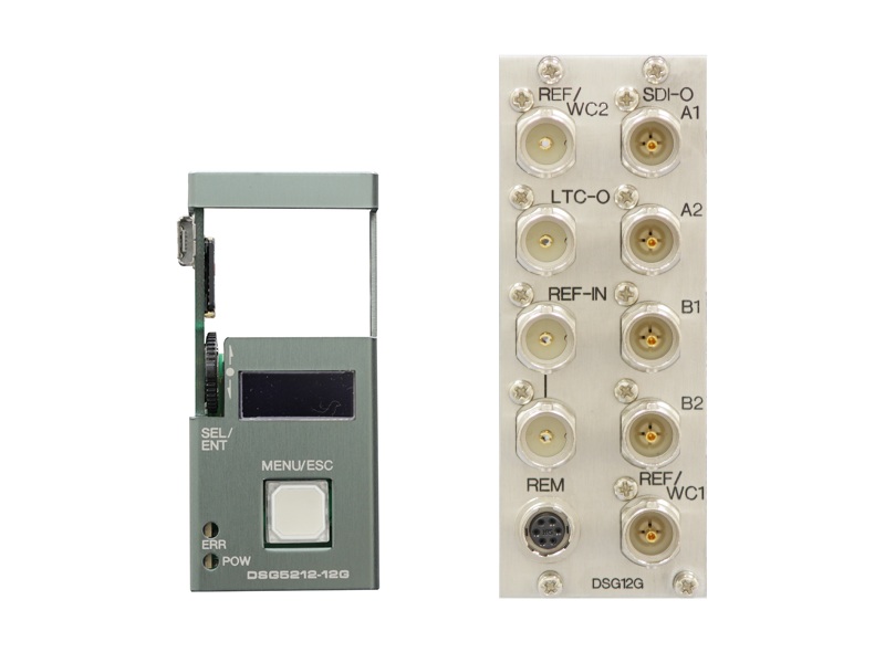 DSG5212-12G は、C5000 モジュールシステムに搭載可能な12G/6G/3G/HD-SDI 信号に対応し、リファレンス信号、ワードクロック信号、LTC 信号出力を備えた、シグナルジェネレーター・モジュールです。