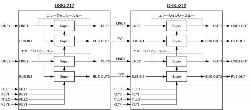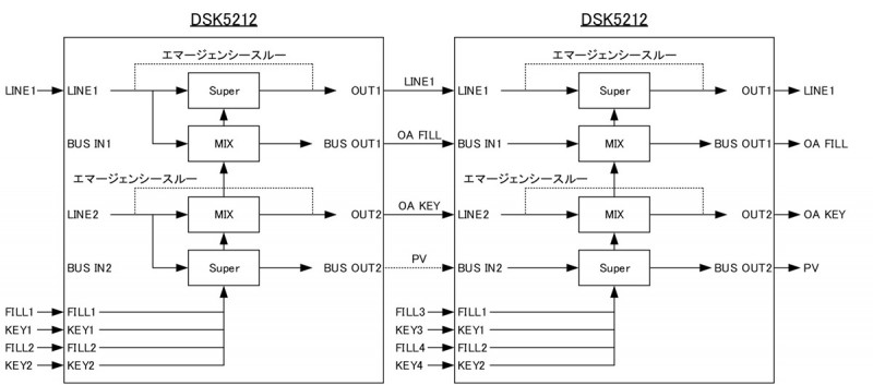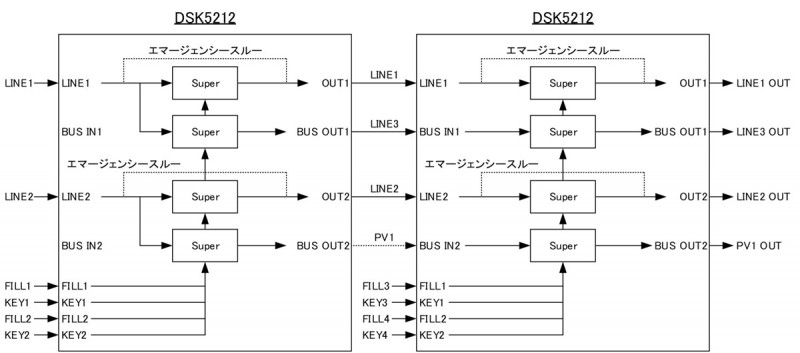5) DSK1系統+コンバイナー出力1系統、スーパー4系統、プレビュー、エマージェンシースルー対応